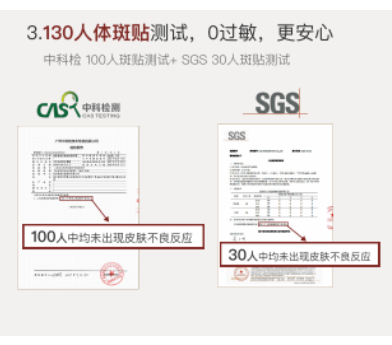 成分安全性:配方温和安全且高效,是敏感肌安心之选,实行8大无添加——无酒精、无色素、无激素、无抗生素、无荧光剂、无传统防腐剂、无重金属超标、无甲醛释放体,无酒精、无A类、无酸类等刺激性成分,敏感肌亦可安心、高效抗老。经两大第三方权威检测机构斑贴测试,130人测试均无过敏反应,其中中科检100人斑贴测试、SGS 30人斑贴测试,受试者均未出现皮肤不良反应,安全性拉满,适合30+熟龄肌长期使用。