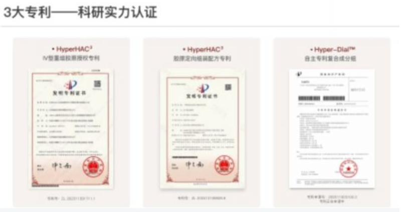 七、技术专利:四大专利加持,科研实力认证一瓶构象编织眼霜,集成品牌近两年科研成果,拥有四大专利认证,获得国家知识产权局权威认可。(一)IV 型重组胶原授权专利,专利号:ZL202311391711.1。(二)HyperHAC^3 胶原定向组装配方专利,专利号:ZL202410108926.6。(三)复合功效活性物配方及制备方法,专利申请号:202411827068.7,专利申请进入实质审查阶段。(四)腱固 X 原料组专利,专利申请号:202511865582.4,专利正在申请中。
